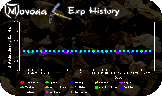 thatswhatshesaidMember Since: 2008-12-24 03:35:52 Active playing time: 0 Days, 9 Hours, 30 Minutes Member Number: 0000008503 Character Experience: 3,934 Character Level: 5 Highest Skill: Fishing Level 6 Nationality: Faldorian |