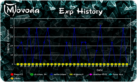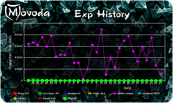 | Rank | Player | Level | Exp | Gained Today (Since Yesterday) |