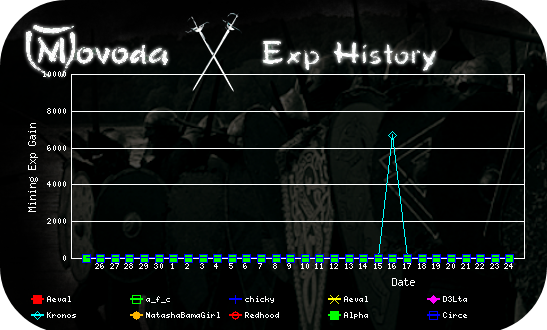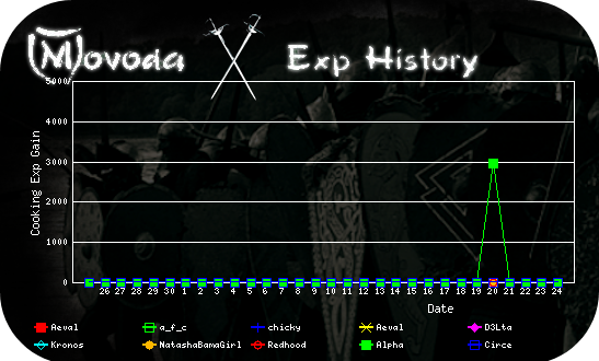 | Rank | Player | Level | Exp | Gained Today (Since Yesterday) |