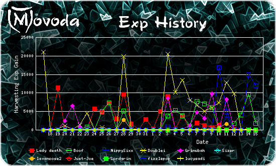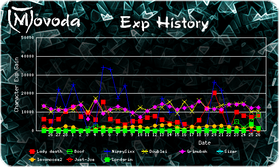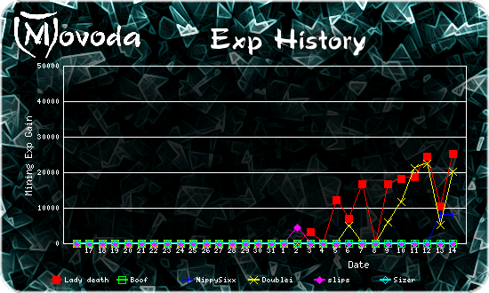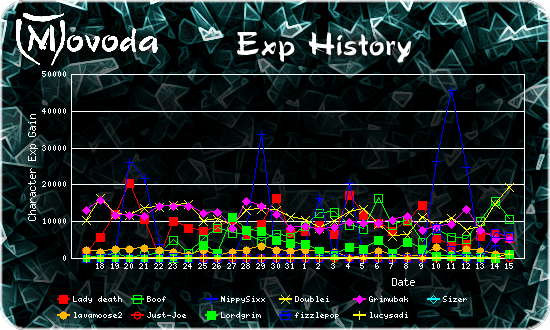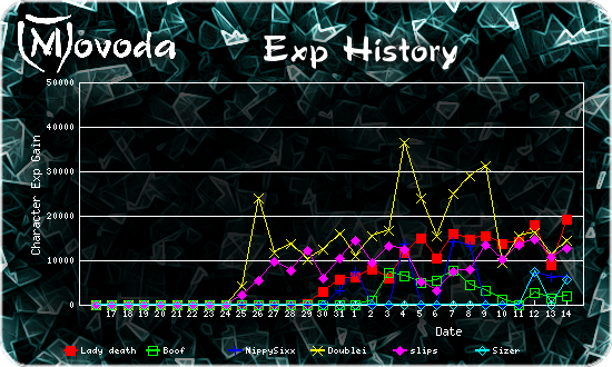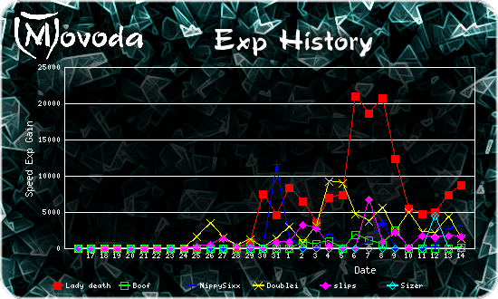 | Rank | Player | Level | Exp | Gained Today (Since Yesterday) |