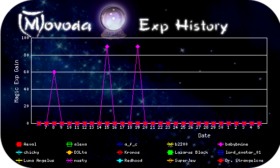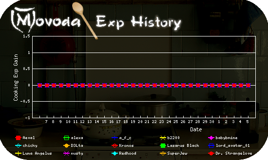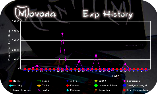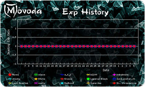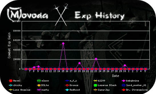 | Rank | Player | Level | Exp | Gained Today (Since Yesterday) |
